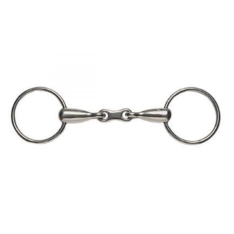 A mobile bit which discourages fixing and leaning on the forehand. Mild bit designed to allow the rider to have an independent control of each side of the mouth, preferable to horses with less palate clearance. The double jointed mouthpiece avoids the nutcracker action of a single joint.
